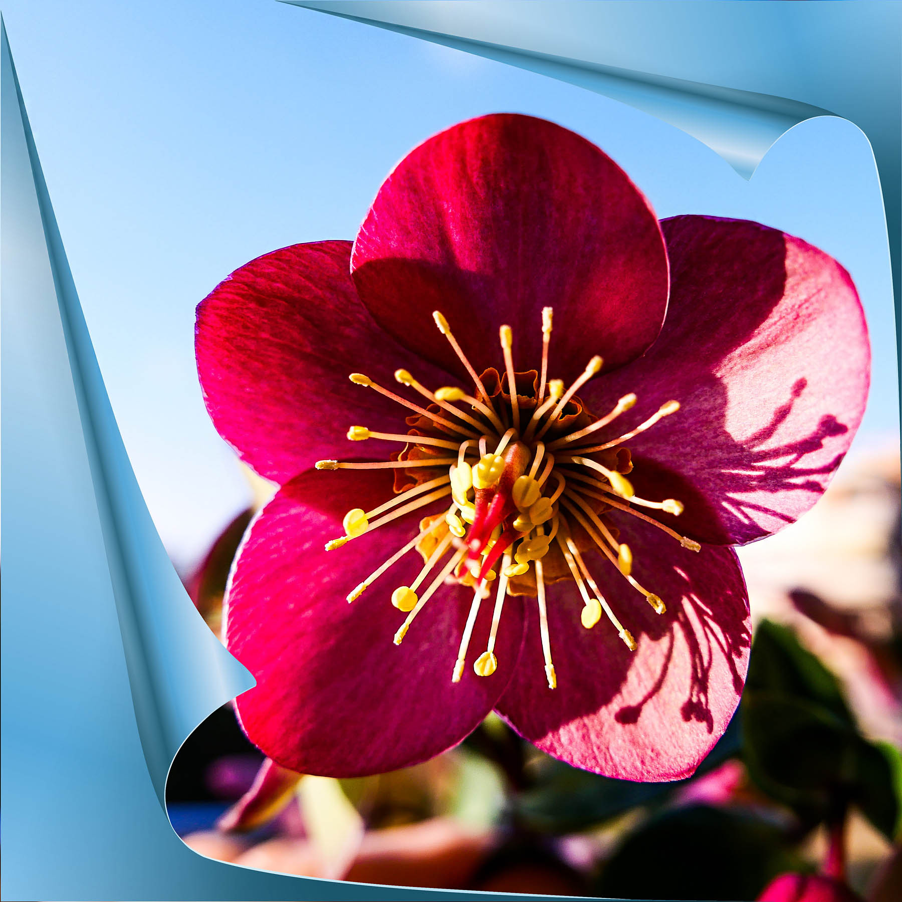 eine rote christrose auf edelpapier