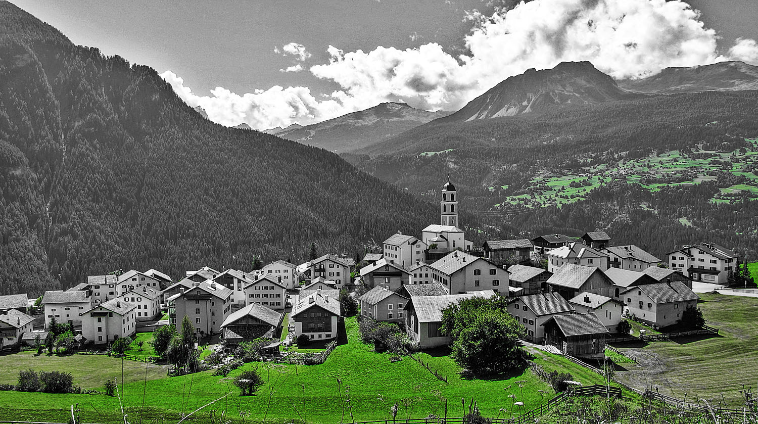 012 das kleine, zu tal gleitende bergdorf brienz / gb