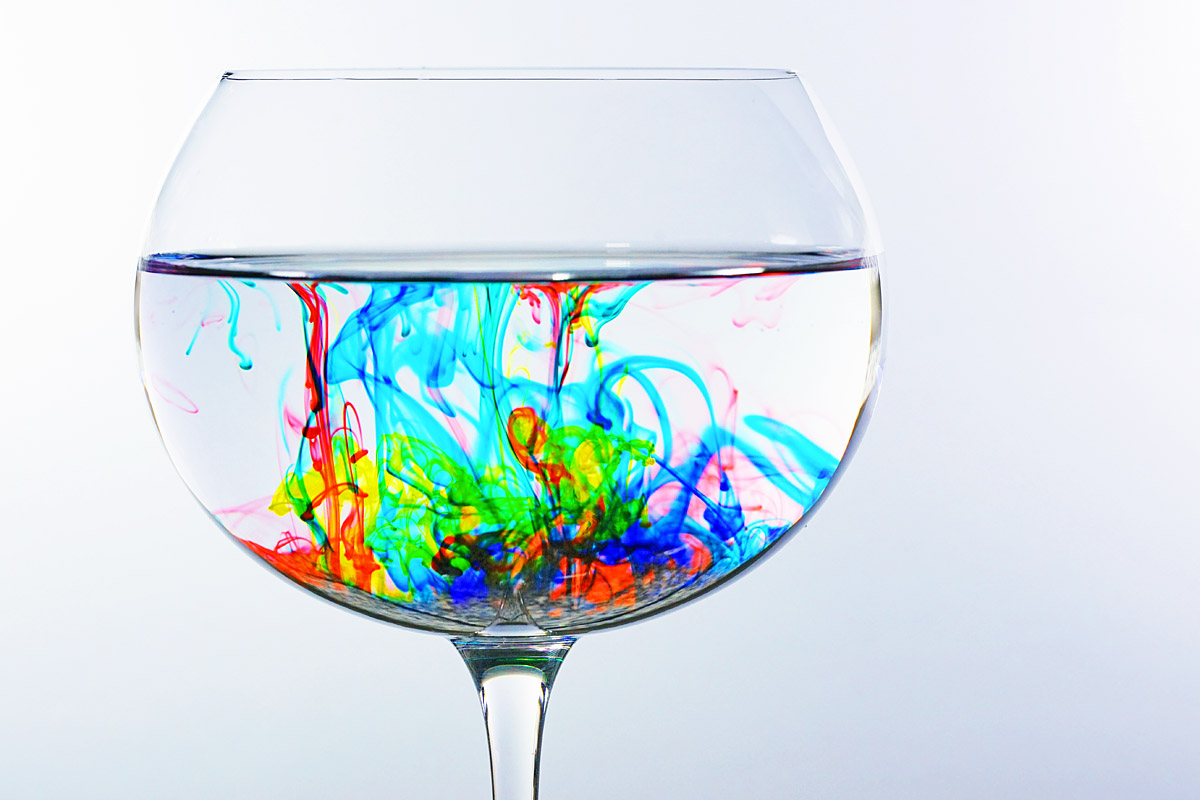 – schwebende farbwolken, ruhig schwebende farbe im wasserglas