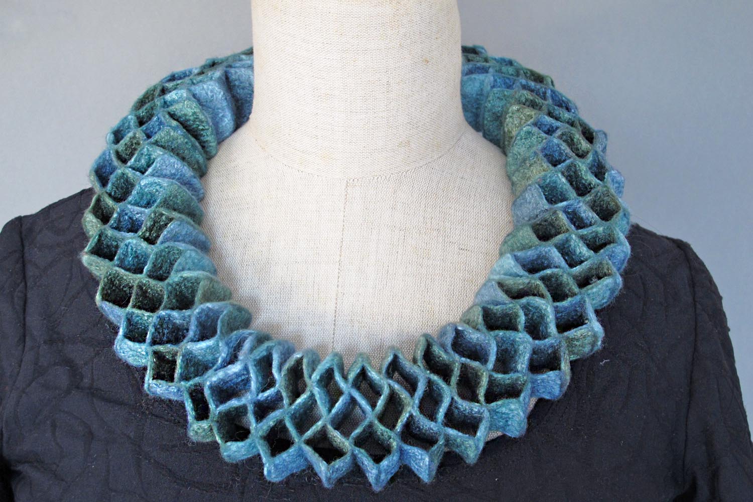 ich liebe das wechselspiel von licht und schatten, von farben, formen und strukturen, die gestalterischen möglichkeiten des materials wolle, das eintauchen in aufgaben die ich mir selber stelle, wieder auftauchen und staunen über das ergebnis. die planung bei filzarbeiten ist unerlässlich. jeder schritt muss wohlüberlegt sein, denn ab einem gewissen punkt gibt es kein zurück mehr.