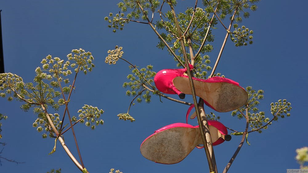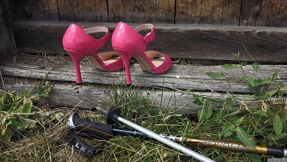 mit ihren dünnen absätzen und funkelnden riemen machten sich rosy und roty mit mir auf den weg. gemeinsam kletterten wir auf hohe berg gipfel, wo sie den wind um ihre schnallen flattern ließen. “wir sind die höchsten high heels der schweiz!” rief rosy stolz.