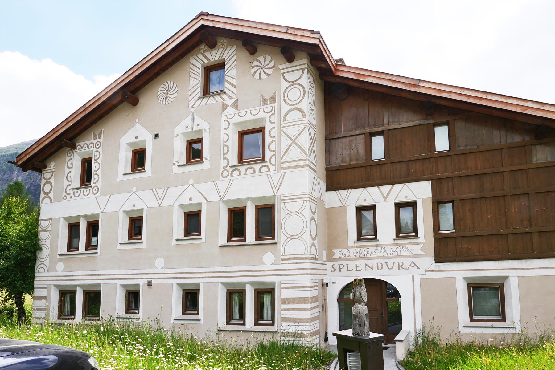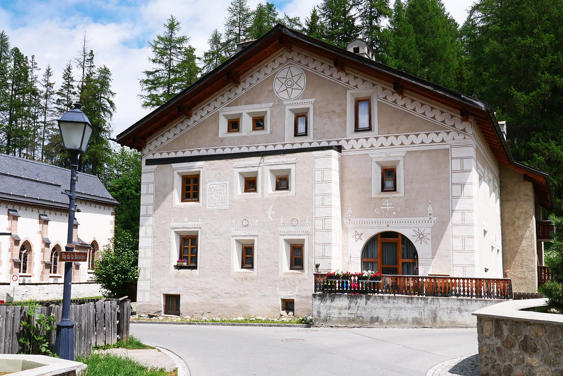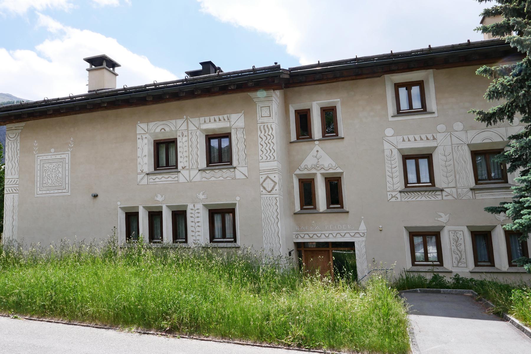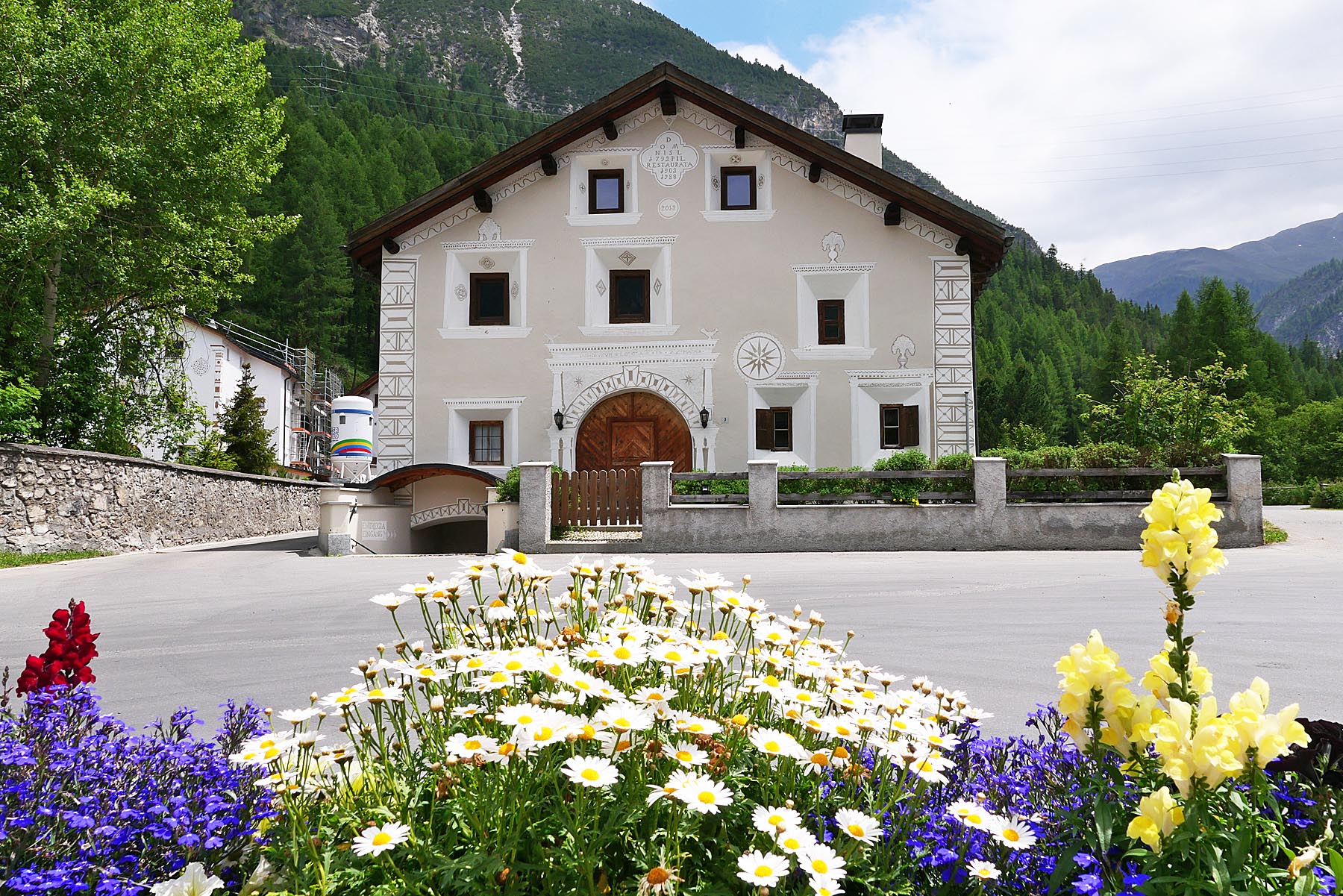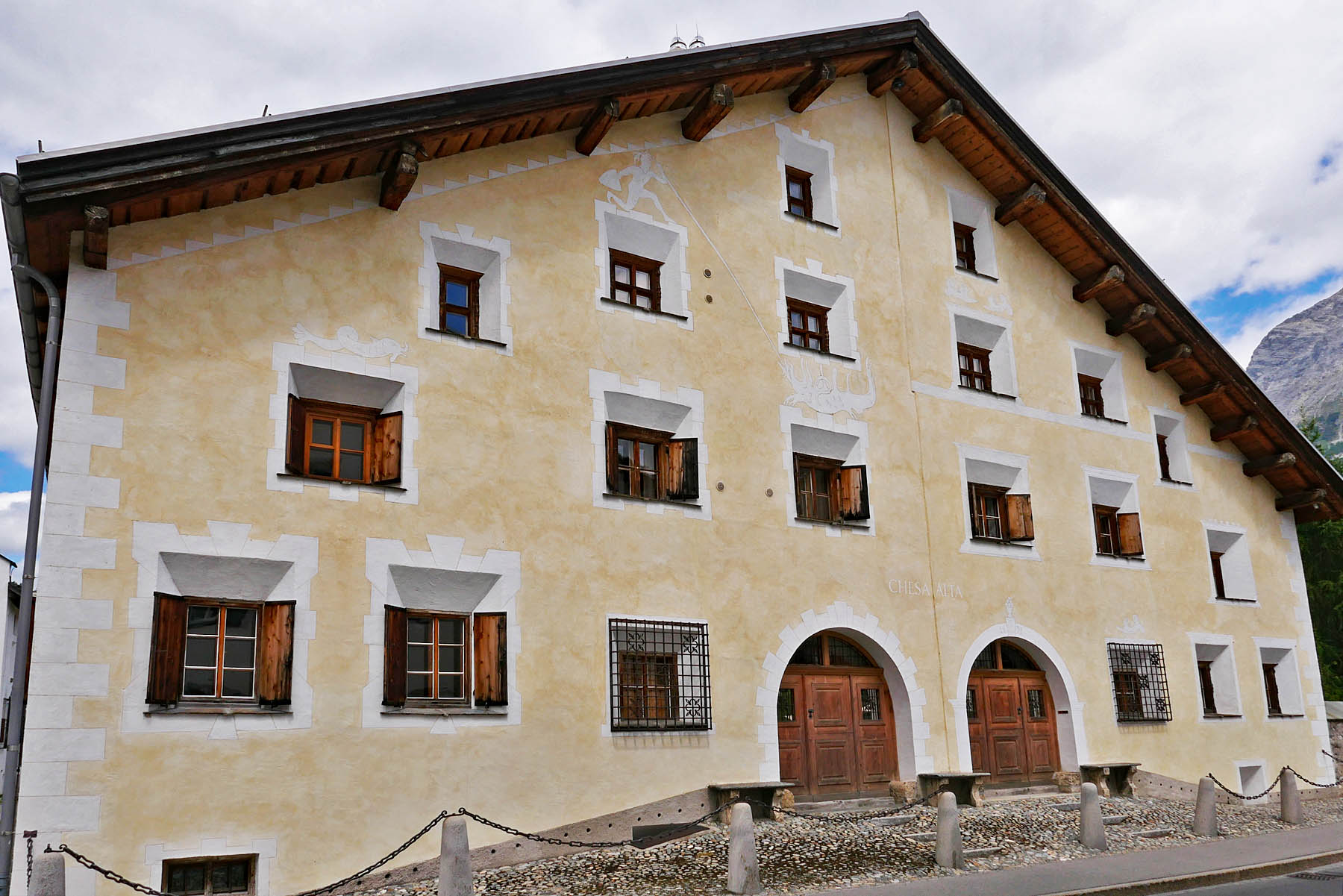 In Chamues-ch sind extrem viele wunderbare Engadinerhäuser mit den verschiedensten Sgraffiti zu finden. Sgraffiti sind in Kalk gekratzte Kunstwerke und Dekorationen, die aus Italien Eingang in das inneralpine Hochtal Engadin gefunden haben. Seit gut einem halben Jahrtausend wird diese Technik zum kulturellen und identitätsstiftenden Erbe des Engadins gezählt.