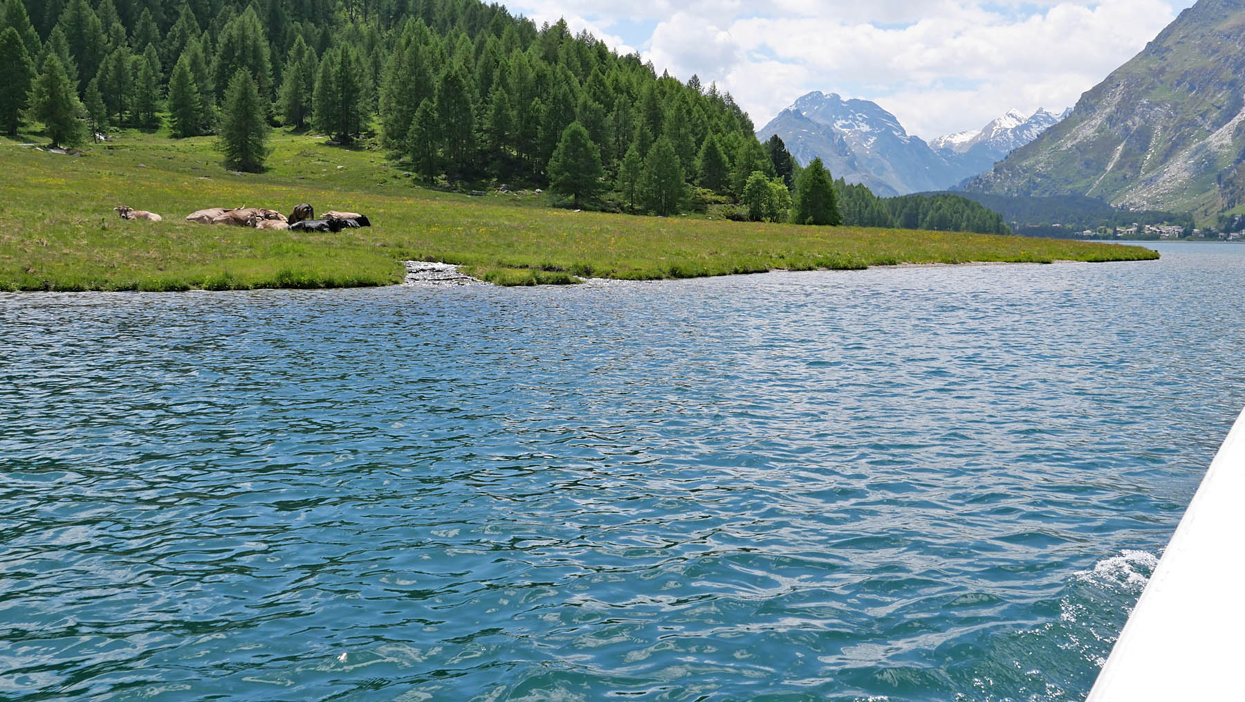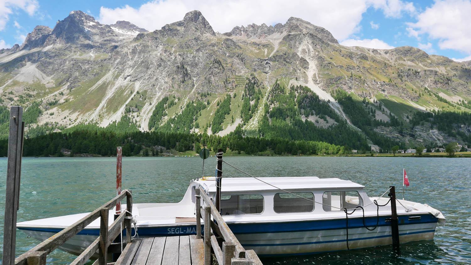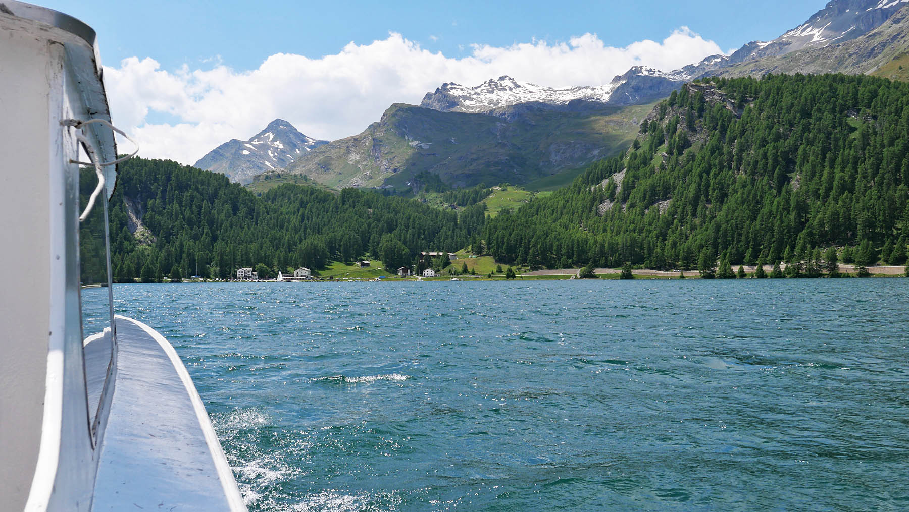 auf 1’800 m ü/M überquert das höchstgelegene kursschiff europas den silsersee / lei da segl. die reise geht von sils maria / segl maria bis zum malojapass auf 1’809 m ü/m.