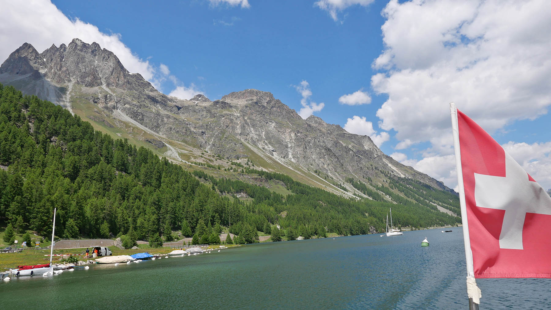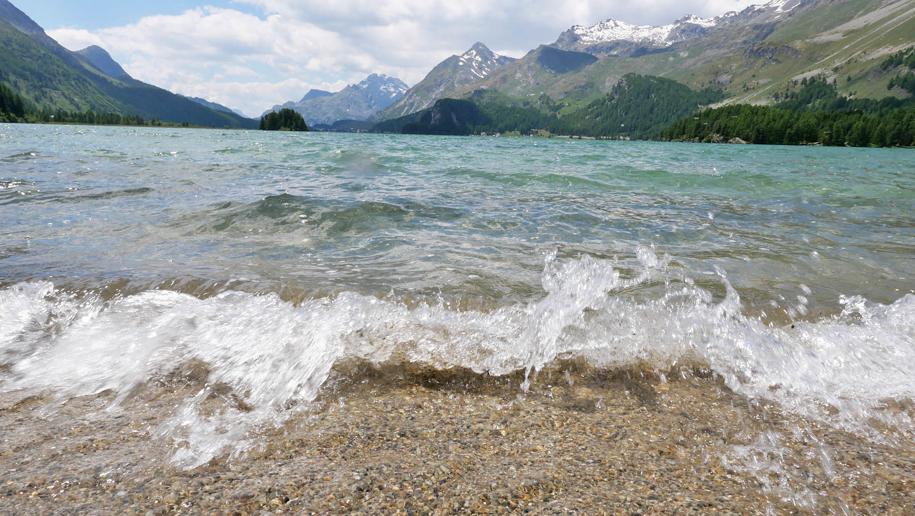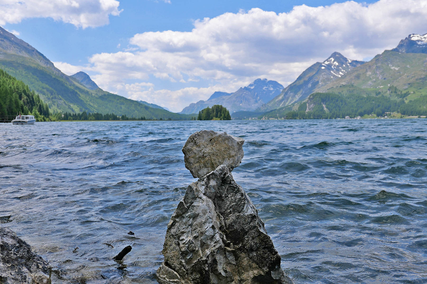 auf 1’800 m ü/M überquert das höchstgelegene kursschiff europas den silsersee / lei da segl. die reise geht von sils maria / segl maria bis zum malojapass auf 1’809 m ü/m.