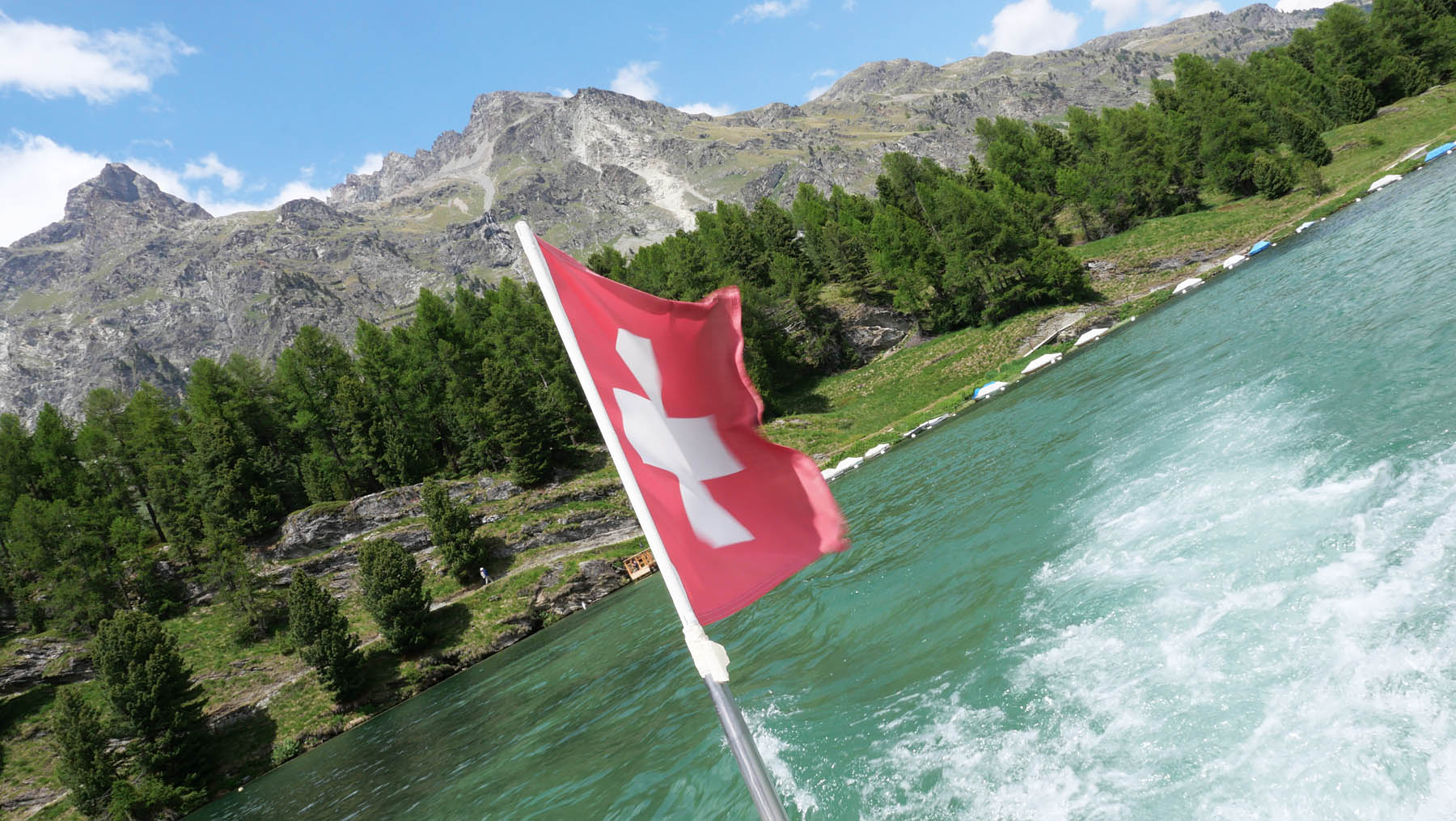 die fahrt auf dem grössten see im graubünden dauert 40 minuten.