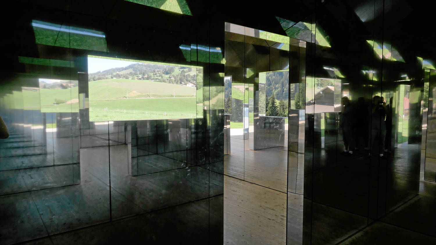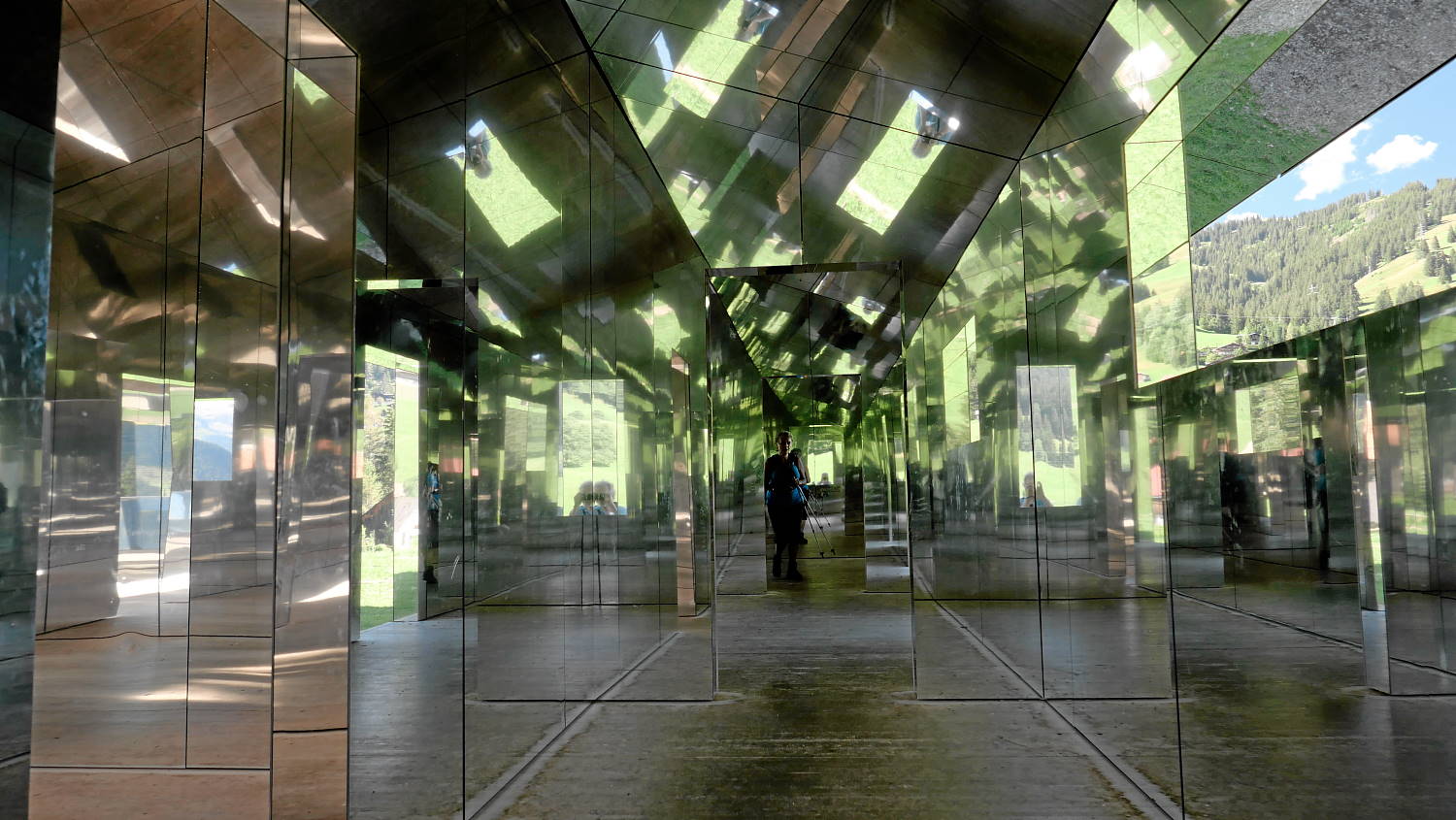 in der tradition der landkunst als spiegelbild der auf den amerikanischen westen projizierten träume und bestrebungen präsentiert ‚mirage gstaad‘ eine sich ständig verändernde begegnung, in der subjekt und objekt, innen und außen, in ständigem fluss sind. mit jeder verfügbaren oberfläche, die mit einem spiegel verkleidet ist, absorbiert und reflektiert sie die landschaft so, dass das äußere scheinbar verschwindet, während das Innere den betrachter in ein nie endendes kaleidoskop aus licht und reflexion zieht.